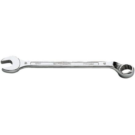 chromovaná, saténová, ohnutá 12-úhlová oční hlava s volným prostorem pod rukojetí, například pro prsty nebo překonávání menších překážek. ISO 7738, DIN 3113, NF ISO 7738.